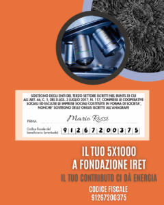 Anche quest’anno puoi scegliere di sostenere Fondazione IRET ETS, soggetto gestore del Tecnopolo di Bologna-Ozzano, destinando il tuo 5×1000 alla ricerca scientifica.